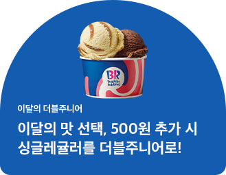 11월 이달의 더블주니어! 이달의 맛 선택 시, 500원 추가하면 싱글레귤러를 더블주니어로 더블업!