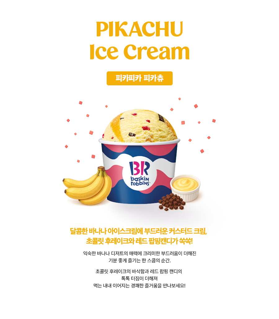 달콤한 바나나 아이스크림에 부드러운 커스터드 크림, 초콜릿 후레이크와 레드 팝핑캔디가 쏙쏙!