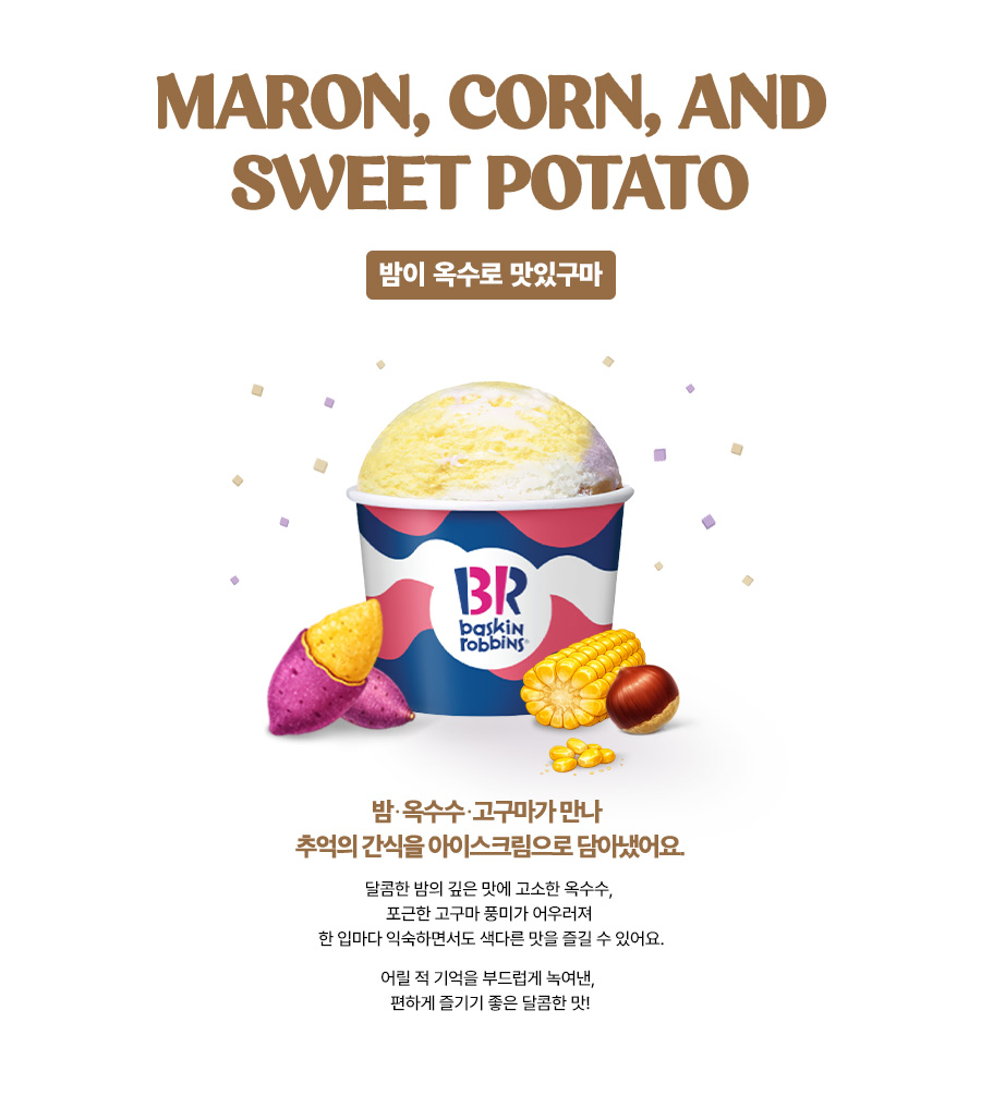 아이스크림으로 즐기는 추억의 간식. 밤, 옥수수, 고구마