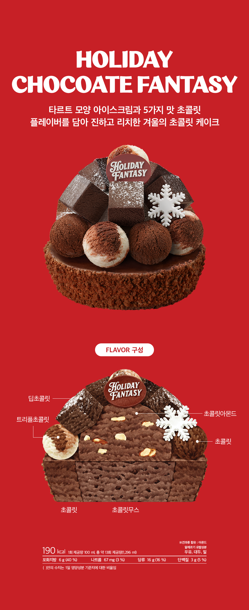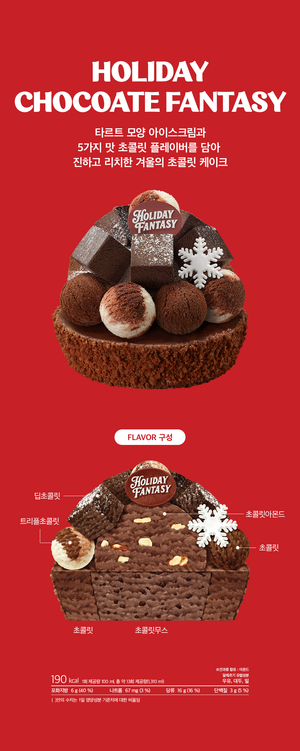 타르트 모양 아이스크림과 5가지 맛 초콜릿 플레이버를 담아 진하고 리치한 겨울의 초콜릿 케이크
