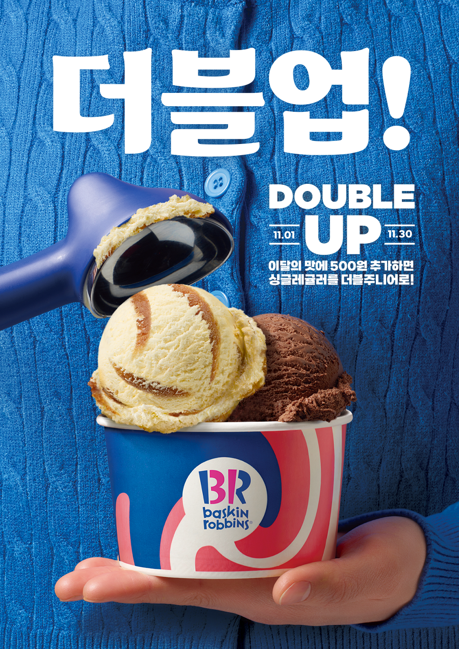 11월 이달의 더블주니어! 이달의 맛 선택 시, 500원 추가하면 싱글레귤러를 더블주니어로 더블업!