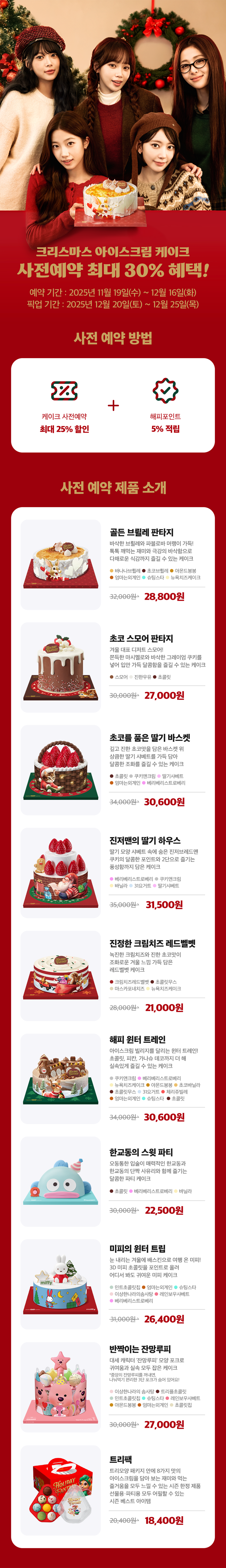 크리스마스 아이스크림 케이크 사전예약 최대 30% 혜택!
