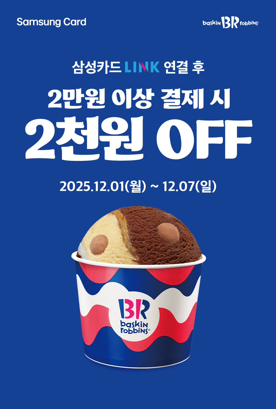 삼성카드 LINK 연결 후, 2만원 이상 결제 시 2천원 OFF