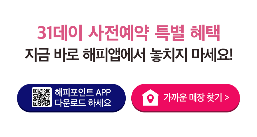- 해피오더를 통한 31데이 사전 예약시 스탬프 적립 가능합니다.