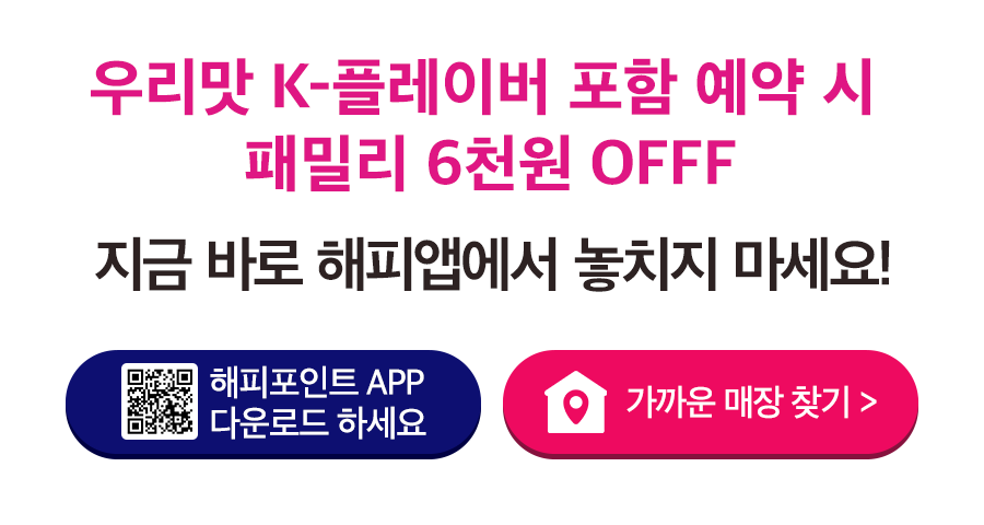 - 해피포인트 적립 대상으로 결제금액의 5% 적립됩니다.