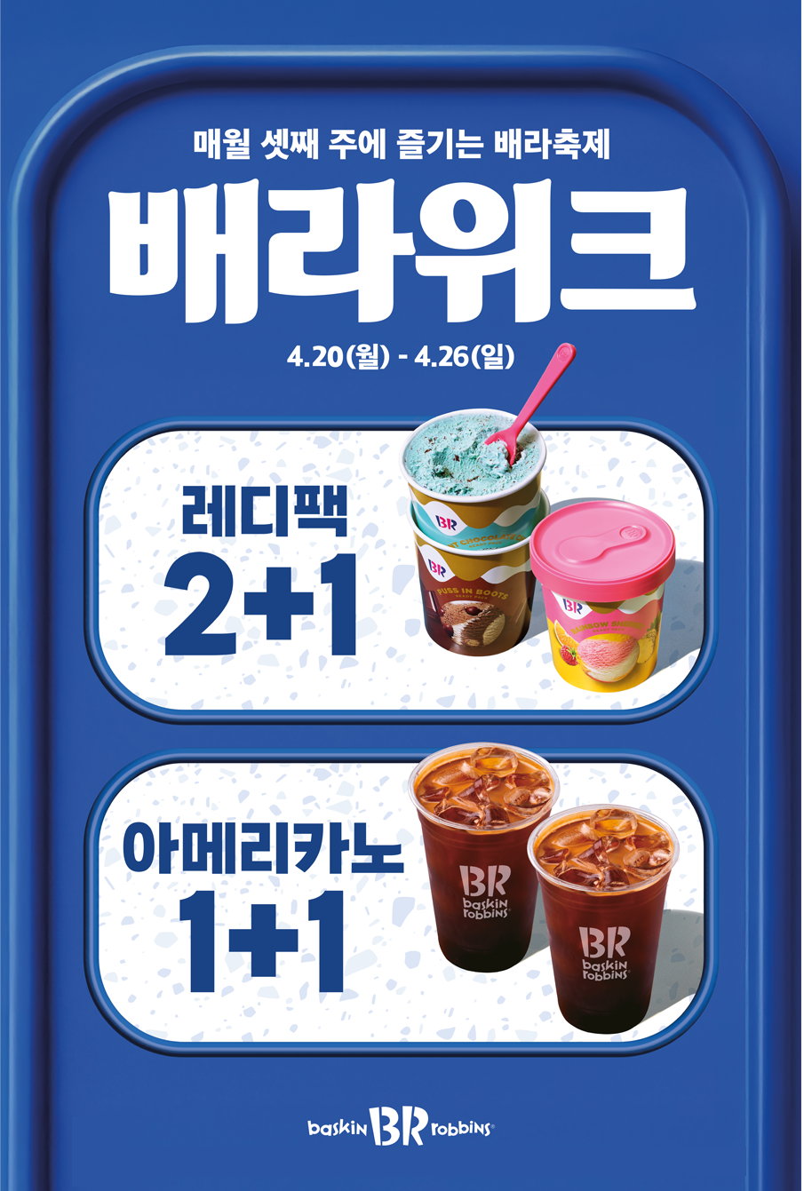 4월 배라위크! 레디팩 2+1, 아메리카노 1+1