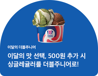 10월 이달의 더블주니어! 이달의 맛 선택 시, 500원 추가하면 싱글레귤러를 더블주니어로 더블업!
