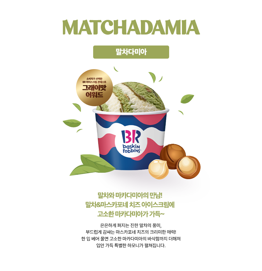 말차와 마카다미아의 만남! 말차&마스카포네 치즈 아이스크림에 고소한 마카다미아가 가득~