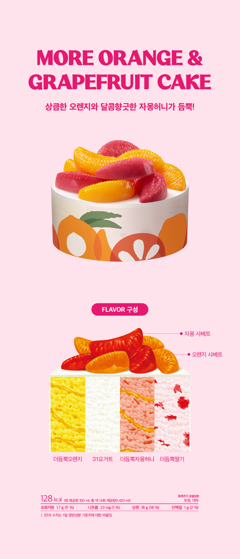 ICECREAM CAKE MORE ORANGE & GRAPEFRUIT CAKE 더 듬뿍 오렌지 앤 자몽 케이크 더 듬뿍 오렌지 앤 자몽 케이크 34,000원 미니 해피 버스데이 케이크 골라먹는 27 큐브