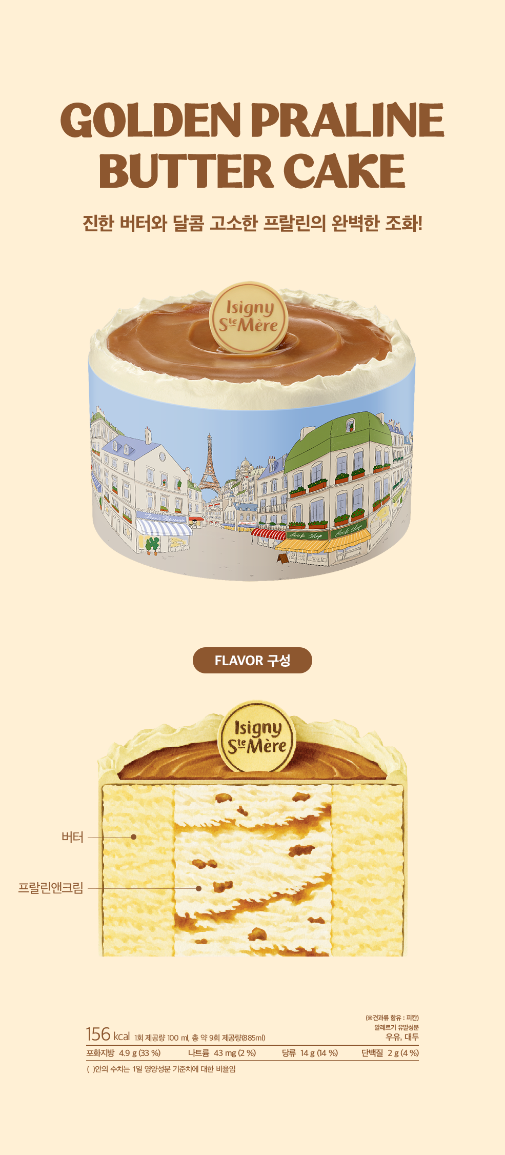 ICECREAM CAKE GOLDEN PRALINE BUTTER CAKE 골든 프랄린 버터 케이크 프랑스 프리미엄 버터 ´이즈니 생 메르´를 담은 진한 버터와 달콤 고소한 프랄린의 완벽한 조화 ! 21,000원 마이멜로디와 더 듬뿍 딸기