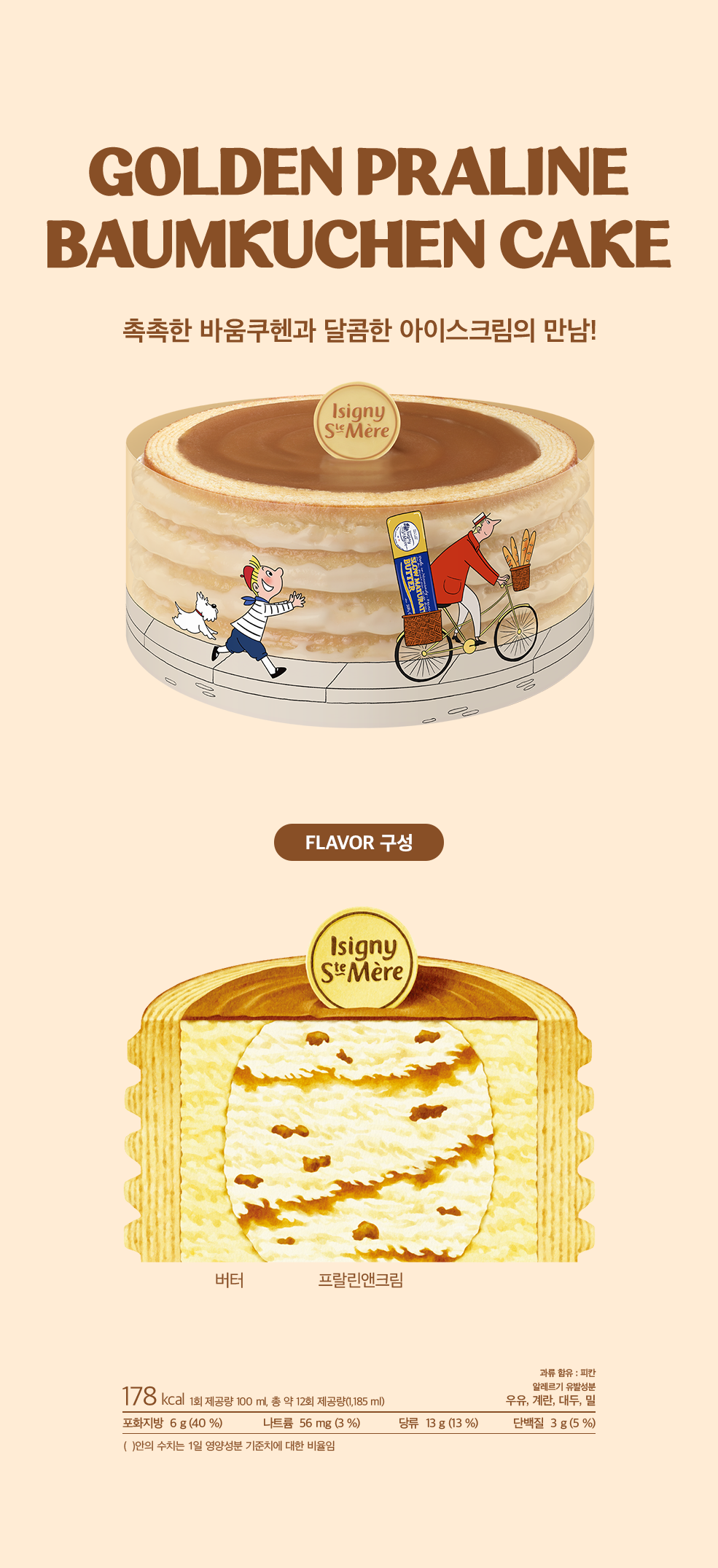 ICECREAM CAKE GOLDEN PRALINE BAUMKUCHEN CAKE 골든 프랄린 바움쿠헨 케이크 촉촉한 바움쿠헨과 달콤한 아이스크림의 만남! 32,000원 더 듬뿍 딸기 우유 케이크 핑크 래빗 에그