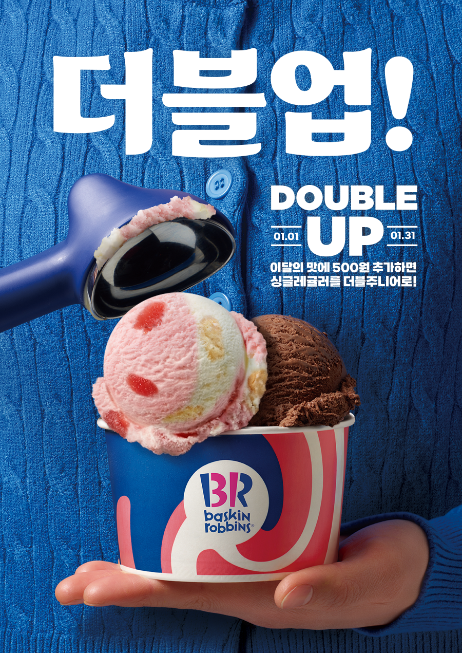 1월 이달의 더블주니어! 이달의 맛 선택 시, 500원 추가하면 싱글레귤러를 더블주니어로 더블업!